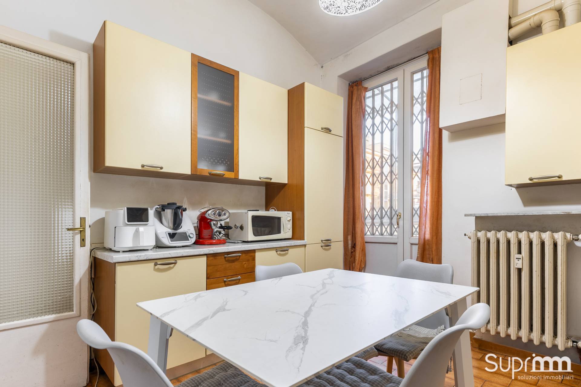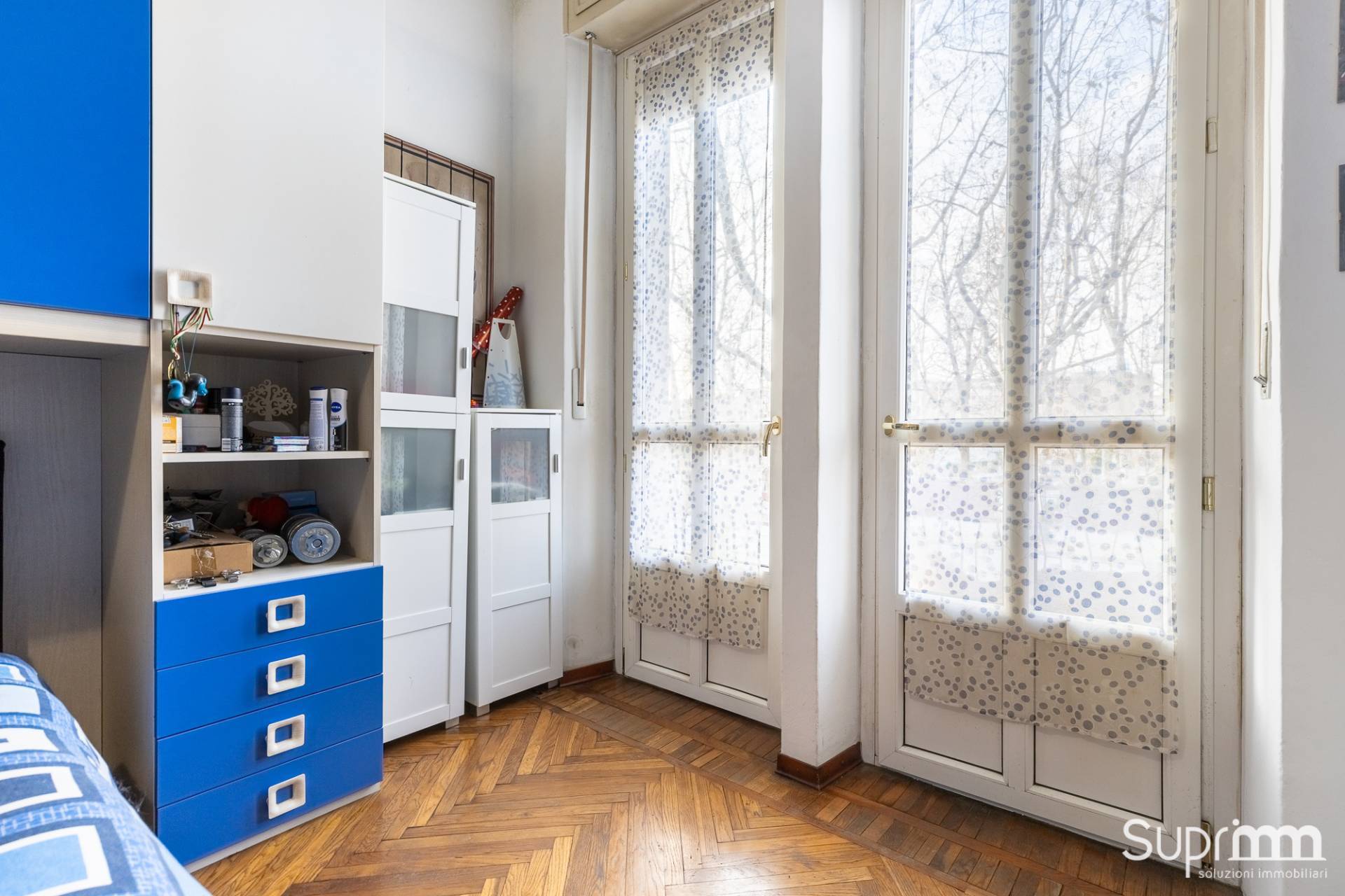 La doppia esposizione garantisce una buona luminosità durante tutta la giornata. I balconi offrono affacci aperti su Corso Casale e sull'interno cortile, permettendo una buona ventilazione degli ambienti. Gli spazi interni risultano facilmente adattabili a diverse esigenze abitative.