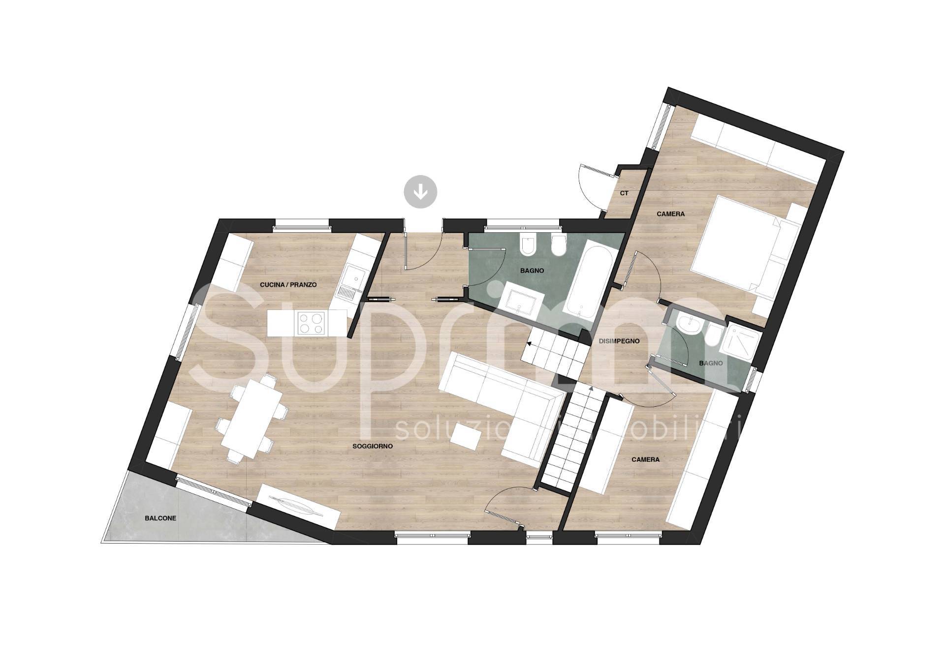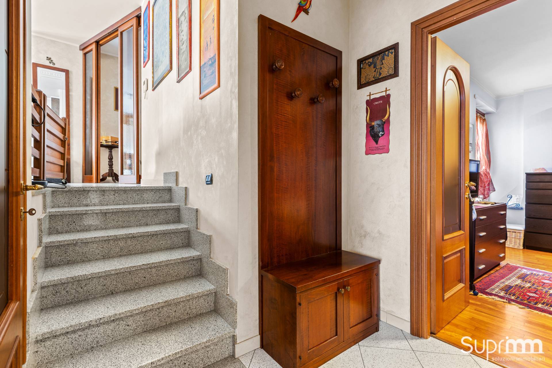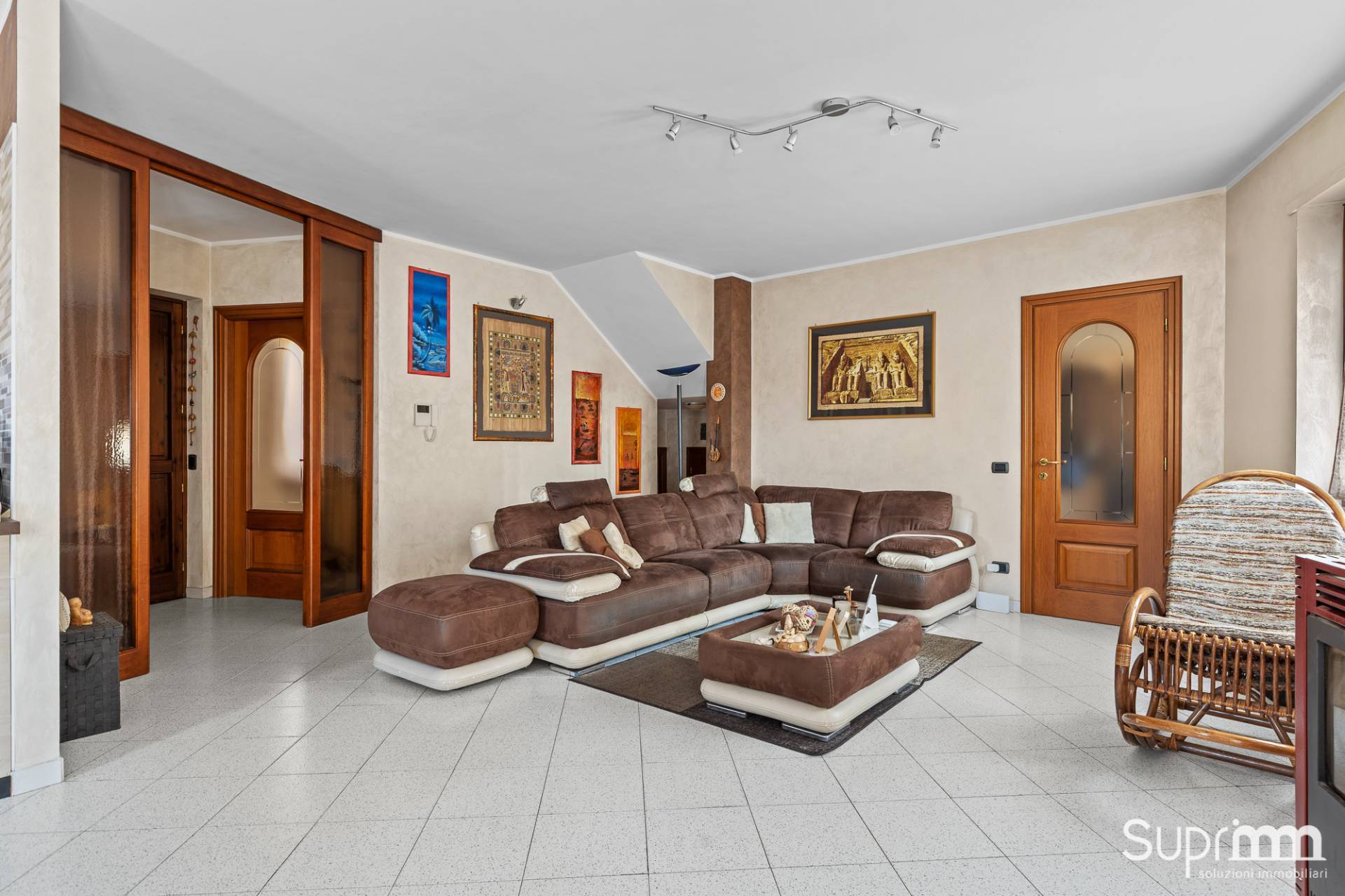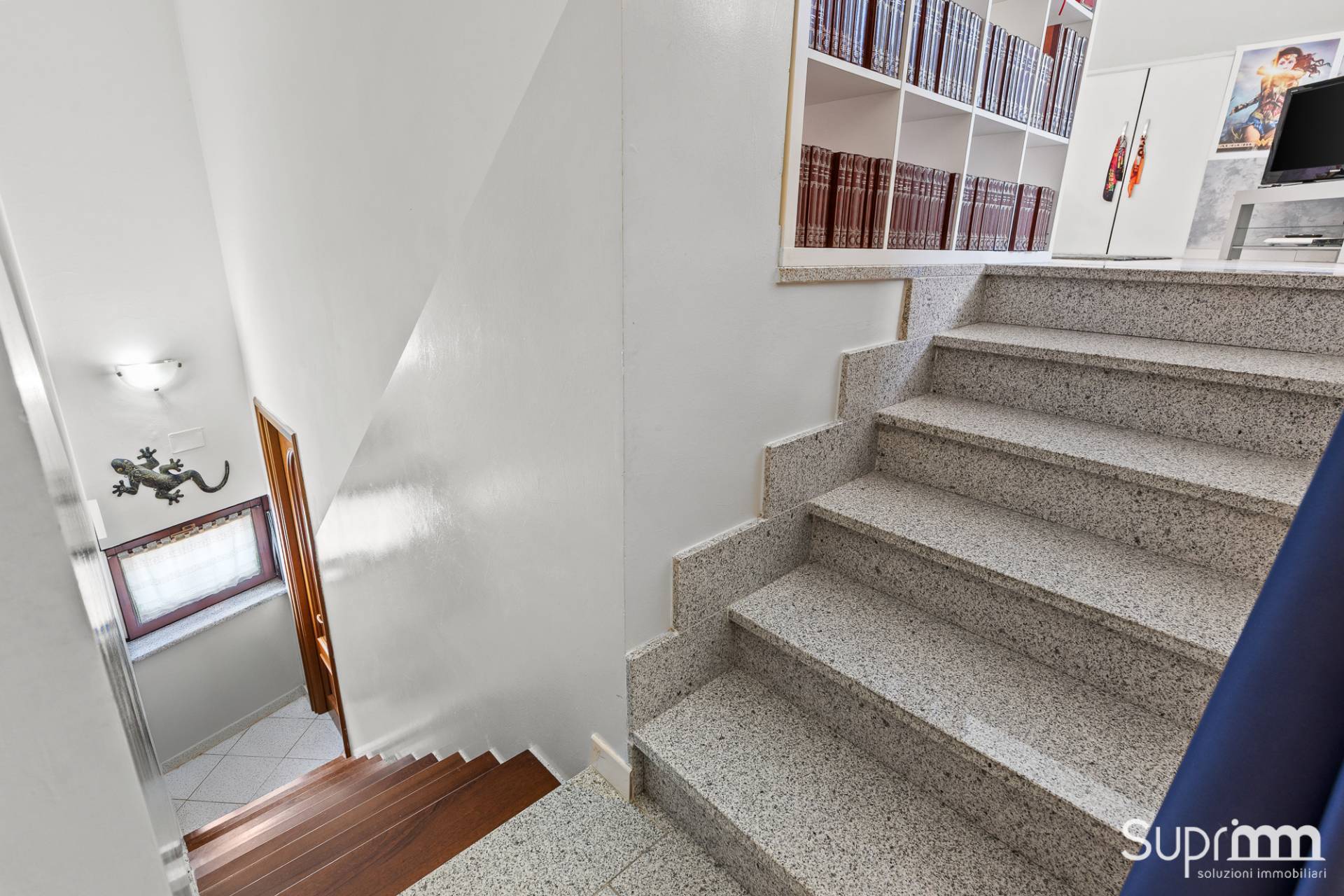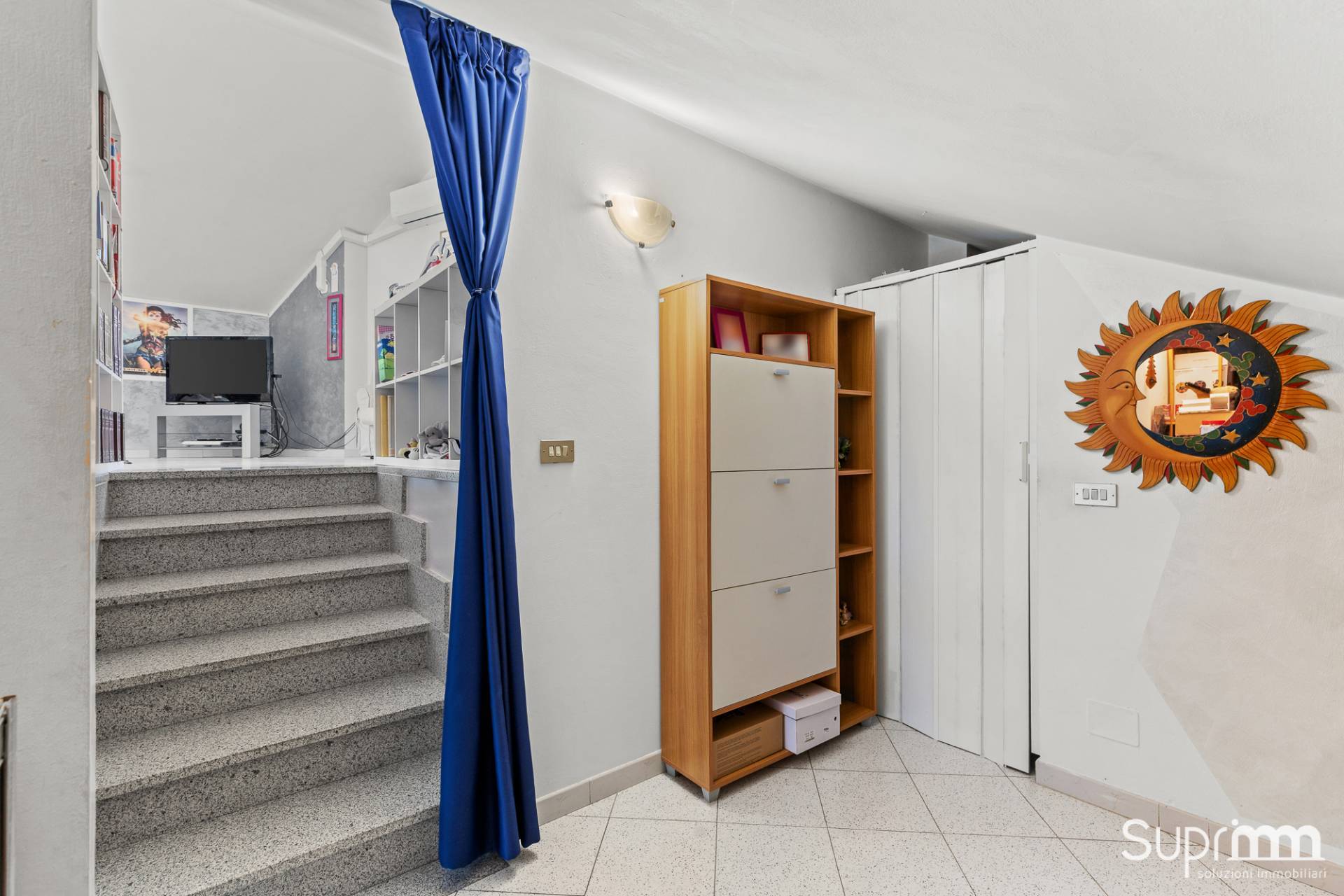 Dalla zona giorno si accede attraverso una scala interna al piano superiore, dove si sviluppa una mansarda di generosa metratura.