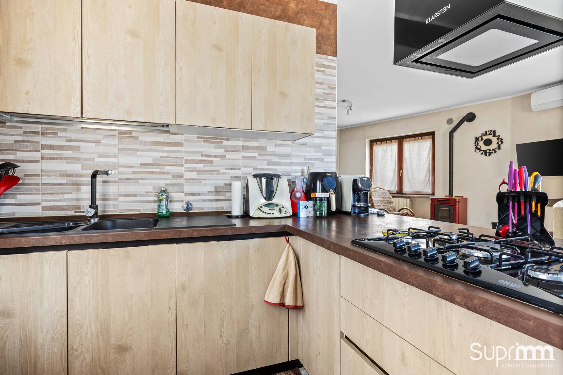 L'ingresso introduce alla spaziosa zona giorno. Qui, il soggiorno e la cucina a vista formano un ambiente unico, valorizzato dalla tripla esposizione che garantisce un'ottima illuminazione naturale durante tutto l'arco della giornata.
