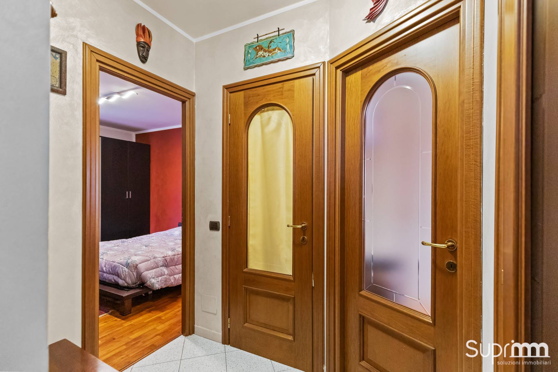 La zona notte, composta da una camera matrimoniale e cameretta risulta pratica e funzionale, con una chiara separazione tra gli spazi giorno e gli spazi notte.